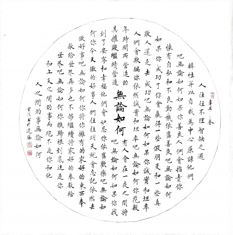 高云淡,1962年生,江苏无锡人。现任逸胜文化创业苑负责人,并任江苏省残疾人书法协会副秘书长。自幼热爱书法,1994年因车祸左手致残,数十年依然笔耕不辍,技艺日渐精进,故而颇有收获。2016年获中华人民共和国人力资源社会保障部高级书法家职称,继而又获中国硬笔书法家协会高级培训师职称,并在无锡惠山老年大学任教多年。现为中宣盛世国际书画院研究员。(文/大鹏)